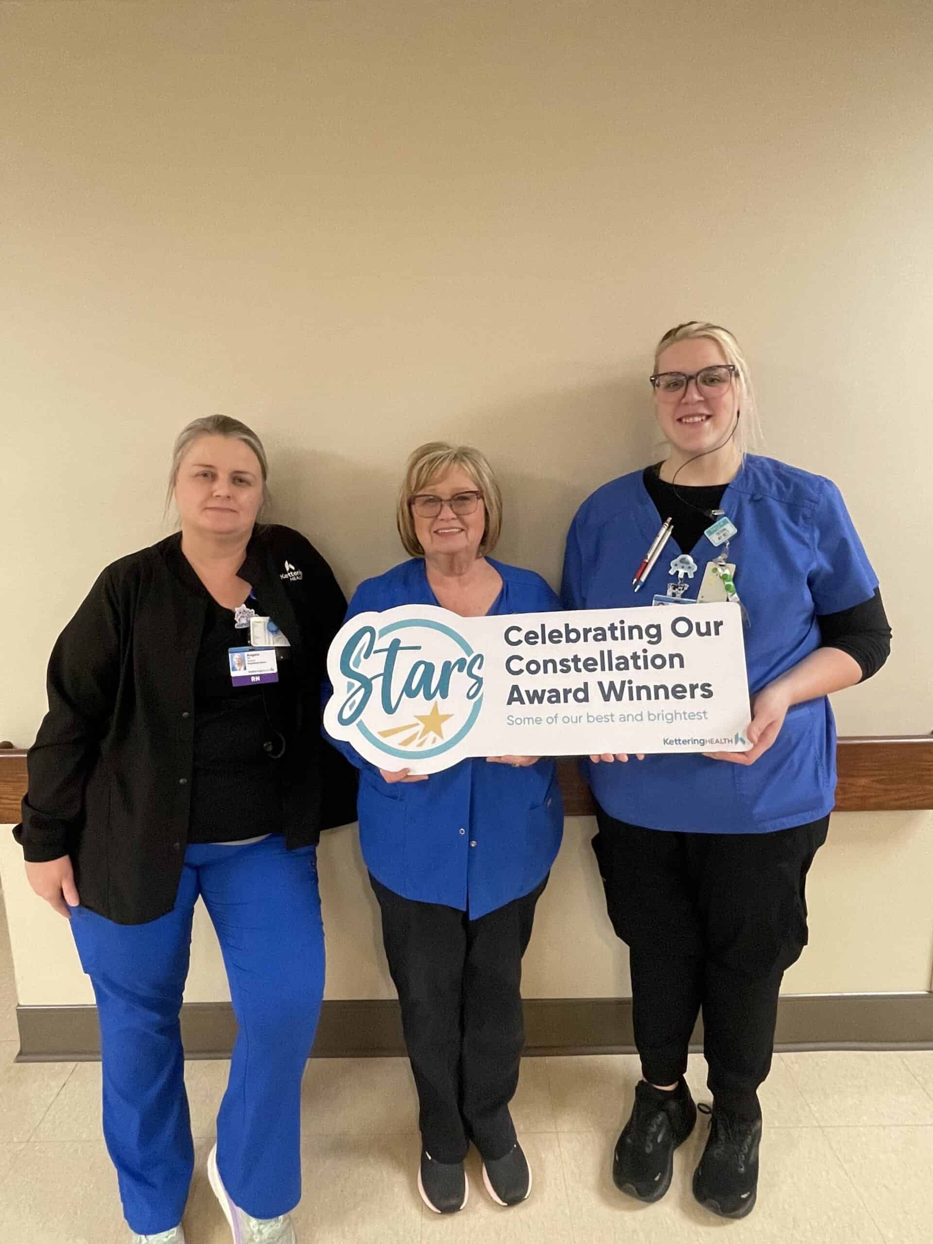 Congratulations to Angela Bowden, Angela Smith, and Jean Whitaker on earning a Constellation Award! Angela B. and Angela S. work on 5 Main at Kettering Health Hamilton, and Jean is a nursing supervisor at the hospital.