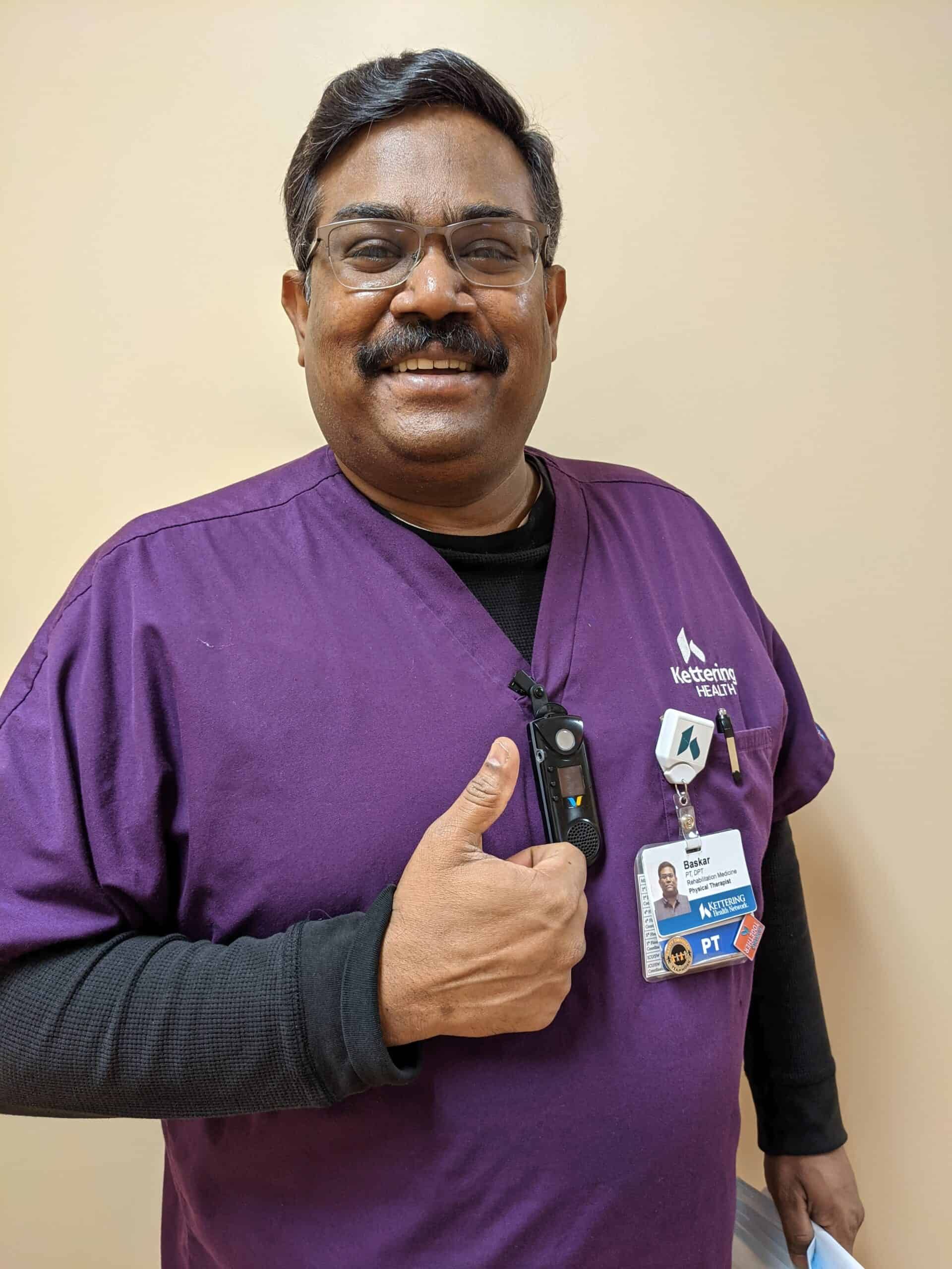 “Baskar “Bobby” Dorairaj is a wonderful human being! My colleague is a very warmhearted person who loves to make people smile and feel welcomed, particularly when they are not feeling their best. He is a firm believer in putting himself in other people’s shoes so that he can better understand their specific needs and figure out the best way to help them during their time at Soin and beyond. The examples of Baskar doing this are numerous. A good example of this occurred recently when we had a patient on our therapy caseload who had been struck by a car while crossing the street. This led to the patient being hospitalized and ultimately requiring surgery. To complicate matters, the patient was a newcomer to the U.S. who had come here on his own to further his education. He was here a grand total of four days and was just starting to embark on this exciting new chapter in his life before this untimely incident occurred. As one could imagine, the patient felt extremely overwhelmed because he was adjusting to life in a new country with a very limited support system around him. Having been here for such a short time, he had not yet established housing. Nor was he afforded many opportunities to establish the type of connections that one depends on for help and support during trying times. The patient did have a niece who was able to fly in from Texas, however, she could only stay for a limited number of days before she had to return to Texas. Following surgery, the patient was very emotional and clearly overwhelmed by his road to recovery. Add to that the pressure of trying to get settled in a new place far from home while having what he perceived as a very limited support system. Fortunately for this patient, Baskar was assigned to evaluate and develop a physical therapy plan of care for him. Baskar identified this gentleman as someone who needed extra support to get back on track. During his evaluation, Baskar seamlessly utilized the ICARE approach to help calm the patient and give him some comfort in knowing that he was not alone in an unfamiliar place. Baskar took time after his long workdays to visit with the patient every day to make sure he was coping with his situation and in good spirits. Baskar even prepared and delivered meals to the patient to make him feel just a little closer to home. When the time came for the patient to be discharged from the hospital, he found himself in a difficult position once again because all his personal belongings were at the local hotel where he had been staying, but he did not have any friends or family to call on to collect his belongings, much less to deliver them to the skilled nursing facility where he was going for rehab. Understandably, the patient was very stressed and felt helpless. But, once again, Baskar took it upon himself to go the extra mile to help. After his shift had ended, Baskar drove to the hotel, gathered all the patient’s personal belongings, and delivered them to the rehab facility for the patient. The patient was very appreciative and thankful for all Baskar’s acts of kindness. Baskar clearly embodies and lives our values daily. He is a positive influence on the workplace culture at Soin and brings immediate value to patient experience. He has expressed that his truest passion lies in patient care, and as demonstrated in this example, he is willing to go above, beyond, and outside the norm to lend a helping hand to those who need it.”