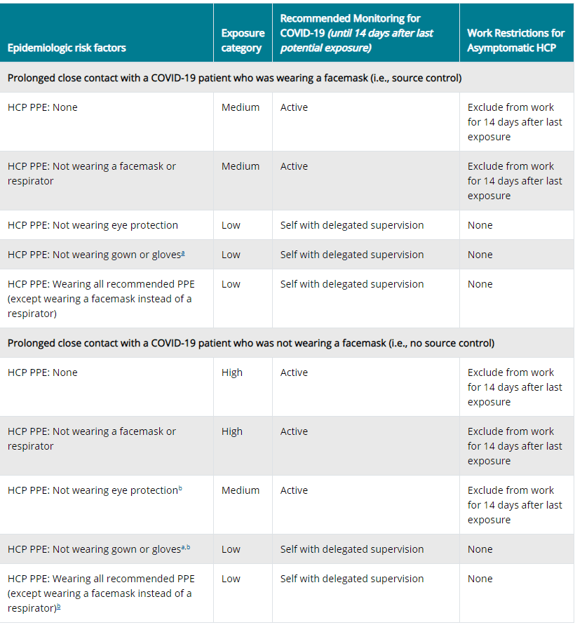If exposure category is medium or higher, call Employee Health to report and self-quarantine for 14 days.