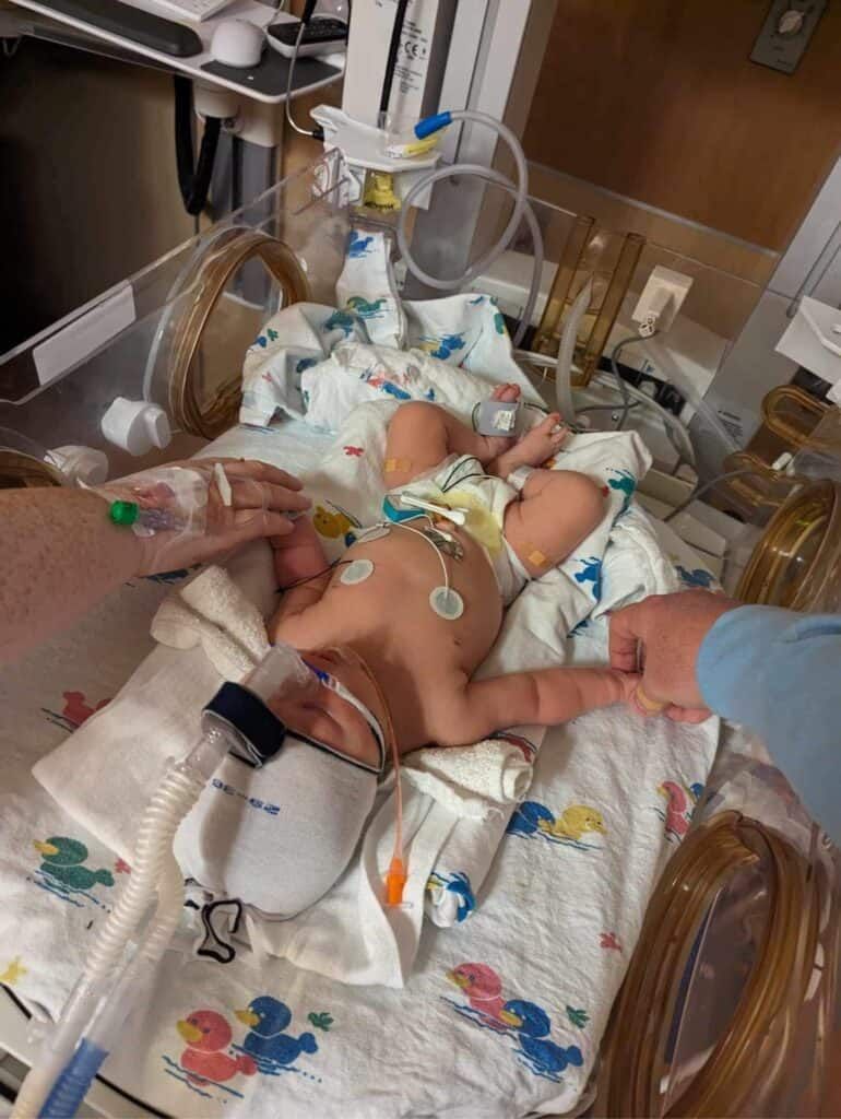 Phillip walked into the room to see Kristy awake. Sitting with her, he showed her a video on his phone. Kristy watched as their baby—their daughter—took fragile breaths, helped by a CPAP machine. She really was OK.